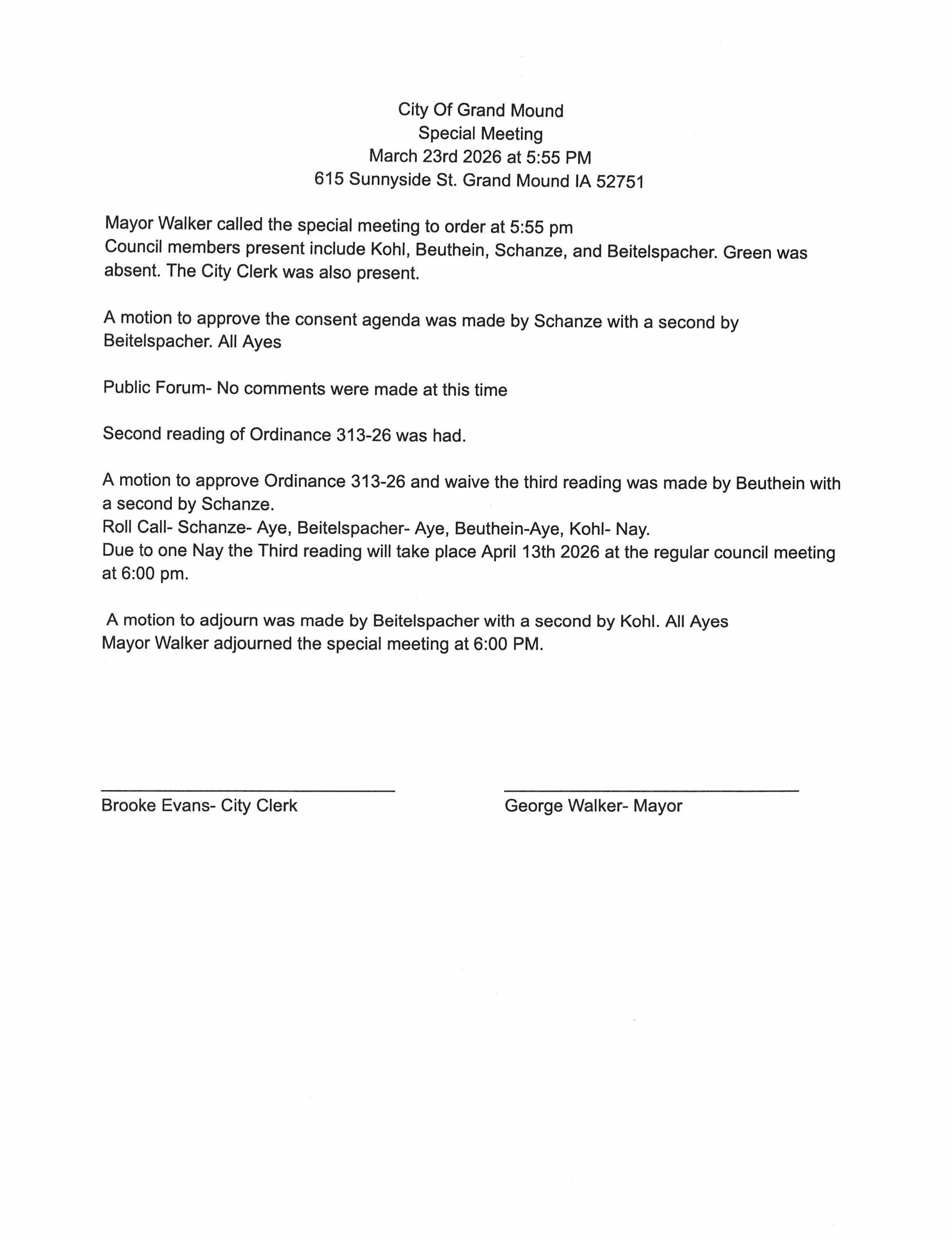 03.23.2026 Special Meeting Ordinance 313-26
